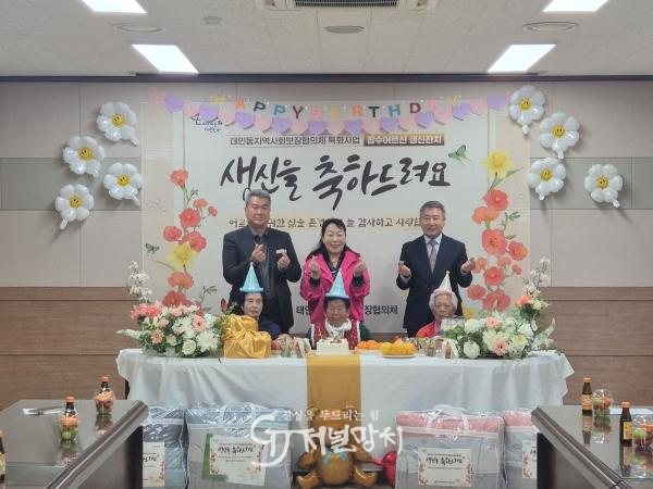 행사는 1월부터 4월 사이 생일을 맞이한 만 90세 이상 어르신 3명을 대상으로 생신 축하와 1인당 11만 원 상당의 선물 전달, 기념촬영 순으로 진행됐다.