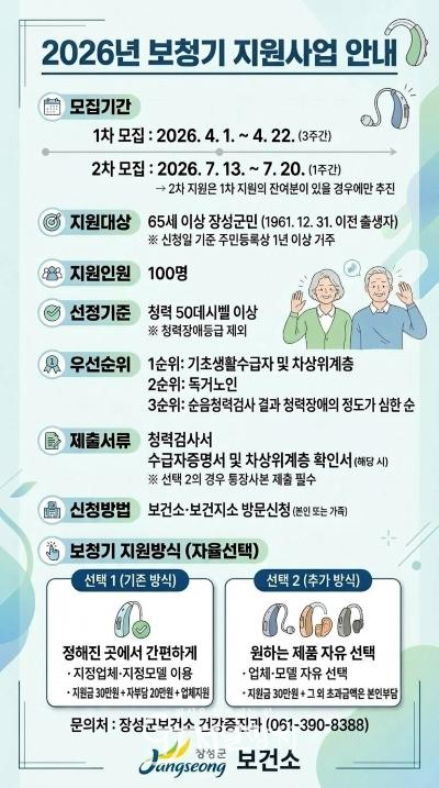 군은 1년 이상 장성군에 주민등록을 두고 거주한 65세 이상 주민이 난청으로 확인된 경우, 보청기 구입을 지원해 왔다. 자부담 20만 원만 내면 군과 협약을 맺은 업체의 보청기를 받을 수 있었다. 나머지 비용은 장성군이 30만 원, 업체 측이 150만 원을 지원한다.