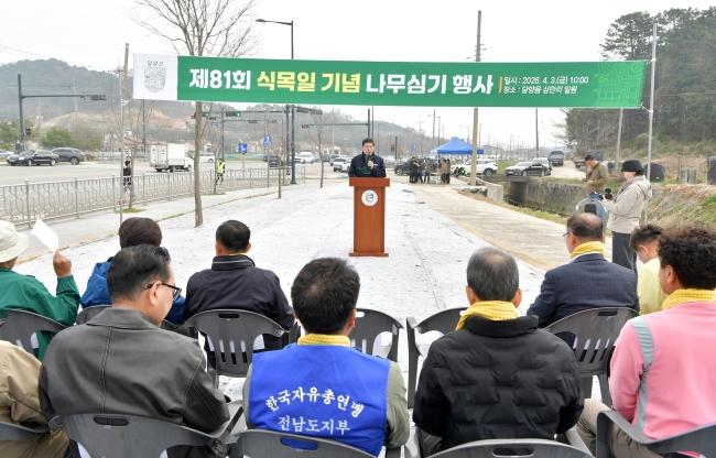 이날 행사에는 담양군수와 담양군의회 의장, 전남도의원, 군의원, 관계기관, 임업인, 공무원, 지역 주민 등 200여 명이 참여해 겹벚나무와 홍가시, 홍매화 등 총 170여 그루를 심었다.