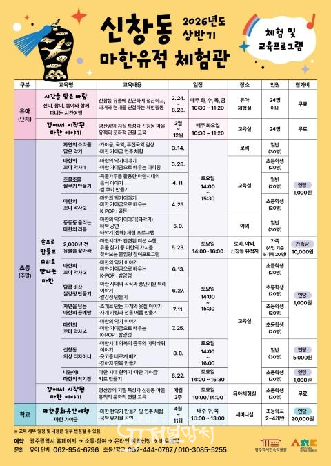 이부호 광주역사민속박물관장은 “이번 마한유적체험관에서 진행되는 다양한 교육 프로그램은 자라나는 미래 세대들이 우리 지역 초기 철기시대의 신창동 유적과 마한 사람들의 문화를 직접 체험해 보면서 광주의 과거와 현재를 연결해 보는 의미있는 시간이 될 것으로 기대한다.”고 했다.