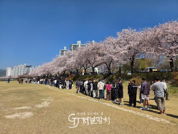 첫날 서천변에서는 점심시간을 맞은 직장인과 시민들이 몰리며 행사 시작 전부터 대기 줄이 형성됐으며, 둘째 날 옥룡사지 동백숲과 마지막 날 금호동 조각공원에서도 상춘객과 가족 단위 방문객의 참여가 이어졌다.