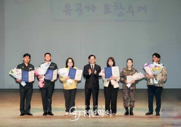 ![]() 고광완 광주광역시장 권한대행이 6일 오후 서구 광주5·18기념문화센터에서 열린 '제58주년 예비군의 날 기념식'에 참석해 유공자 표창을 수여한 뒤 기념촬영을 하고 있다./광주광역시 제공 |