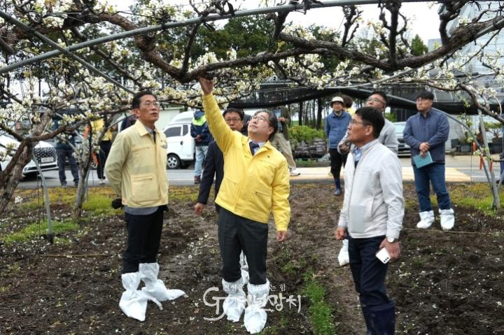 이날 강상구 나주시장 권한대행은 노안면 금동리 피해 농가를 직접 방문해 피해 상황을 점검하고 농민들을 위로했다. 강 시장권한대행은 “농민들의 피해를 최소화할 수 있도록 신속한 복구 지원과 행정적·재정적 지원을 아끼지 않겠다.”고 했다.