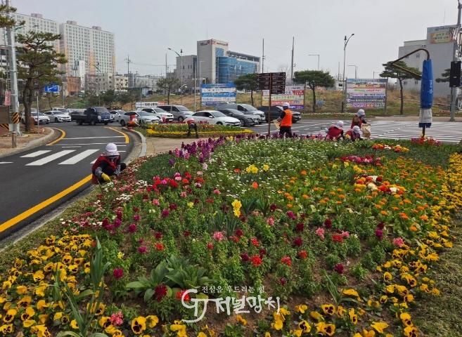 시는 주요 교통섬 6개소와 대형 화분 등에 봄꽃을 배치해 운전자와 보행자 모두가 봄의 정취를 느낄 수 있도록 했다.