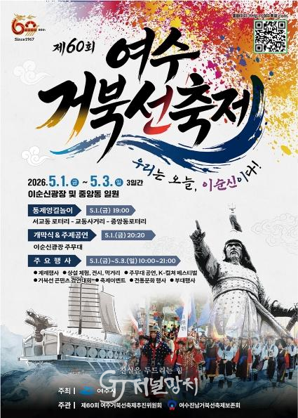 올해로 60회를 맞는 여수거북선축제는 여수시가 주최하고 여수거북선축제추진위원회와 여수거북선축제보존회가 주관한다. 전통과 현대가 어우러진 다양한 콘텐츠로 시민과 관광객이 함께 즐기는 참여형 축제로 꾸며진다.