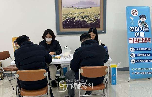 ![]() 최근 한국전력공사에서 진행된 나주시의 ‘찾아가는 금연 클리닉’ 현장.