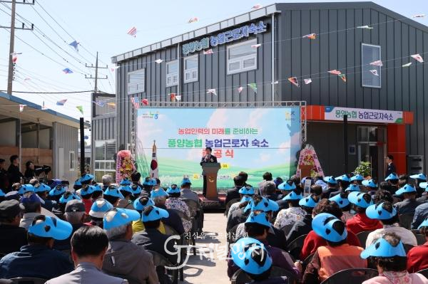 이번에 준공된 기숙사는 농촌 인력난 해소를 위한 기반 시설로, 사업비 6억 6,000만 원(도비 1억 2,600만 원, 군비 2억 9,400만 원, 자담 2억 4,000만 원)이 투입됐다. 기숙사는 지상 2층, 연면적 312㎡ 규모로 건립됐으며, 24명을 수용할 수 있는 4인실 숙소 6개와 공용 주방과 세탁실, 화장실, 샤워실 등 편의시설을 갖췄다.