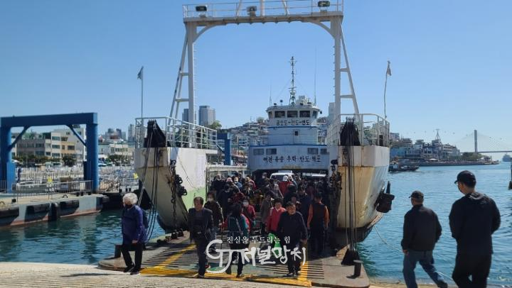 ![]() 여수~연도를 오가는 여객선에서 이용객들이 승·하차하고 있다. |
