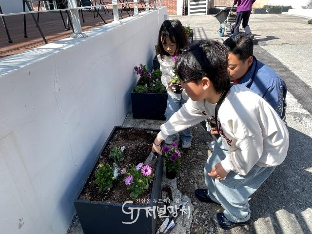 참여자들은 직접 꽃모종을 심고, 버려지는 빈 생수통을 활용해 나만의 업사이클링 화분을 만드는 체험 활동을 펼쳤다.