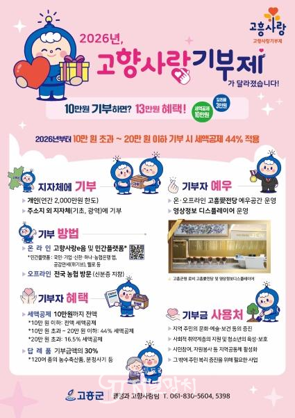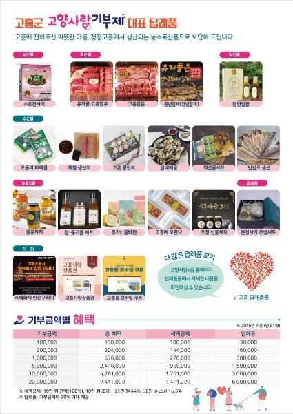 한편, 고향사랑기부제는 개인이 주소지를 제외한 다른 지방자치단체에 기부할 수 있는 제도로, 기부금에 대한 세액공제와 함께 지역 특산품 등 답례품을 제공받을 수 있다.