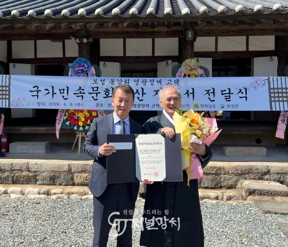 군 관계자는 “보성 봉강리 영광정씨 고택의 국가민속문화유산 지정서 전달은 보성의 소중한 문화유산 가치를 대외적으로 다시 한번 알리는 계기”라며, “앞으로도 전통가옥과 지역의 다양한 역사 문화 자원을 체계적으로 보존·관리하고, 군민과 함께 향유 할 수 있는 활용 방안도 적극 마련해 나가겠다.”고 했다.