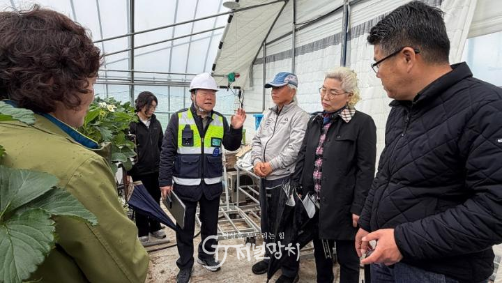 함평군 농업기술센터는 지난 9일 대동면 딸기 체험 농가를 방문해 현장 컨설팅을 진행했다. 농작업안전관리자는 현장에서 사다리와 출입구 구조물, 벌통 등 다양한 위험 요인을 발견하고 ▲사다리 미끄럼 방지 장치 부착 ▲구조물 시인성 개선 ▲벌통 위치 조정 등 개선 방안을 제시했다.
