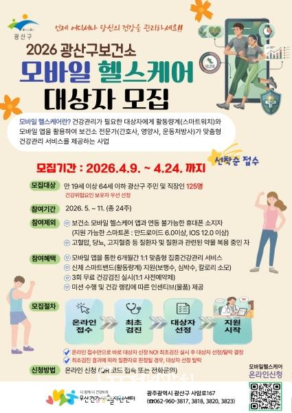 신청은 24일까지며 스마트폰을 소지한 구민이라면 정보무늬(QR코드) 또는 우산건강생활지원센터(062-960-3823, 3820, 3818)로 전화 신청하면 된다.
