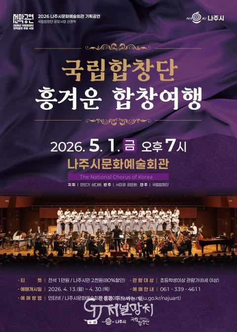 이번 공연은 나주시가 ‘2026년 국립합창단 지역공연 공모’에 선정되며 광주전남 지역에서 유일하게 개최되는 무대로 의미를 더한다.