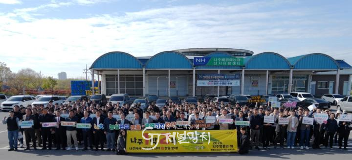 13일 나주시와 농협중앙회 나주시지부에 따르면 이날 나주배박물관에서 ‘2026 유관기관·범농협 영농지원 발대식 및 농촌일손돕기 행사’를 개최했다.
