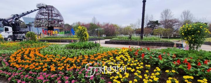 함평군은 “오는 24일 제28회 함평나비대축제 개막을 앞두고 축제장에 대형 꽃탑을 설치했다.”고 14일 밝혔다.