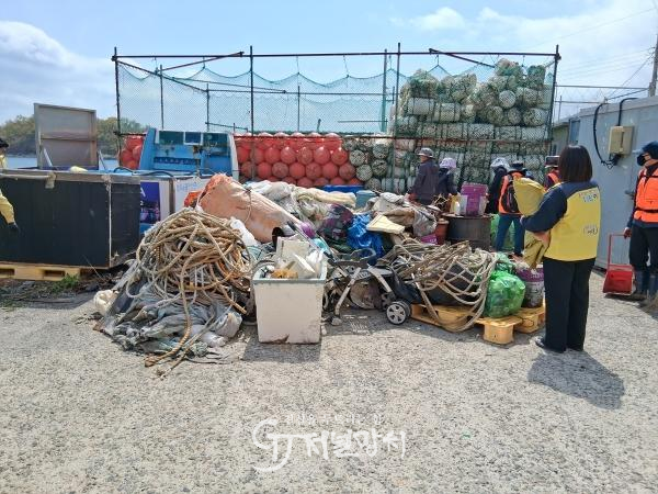 특히 효율적인 수거 작업을 위해 5톤 집게차 1대, 암롤박스 트럭 7대, 지게차 2대 등 총 11대의 중장비를 투입했으며, 해안가에 무단 방치돼 도시 미관을 저해하던 폐어구, 폐유, 폐낚시구 등 각종 폐기물 약 190톤을 전량 수거했다.