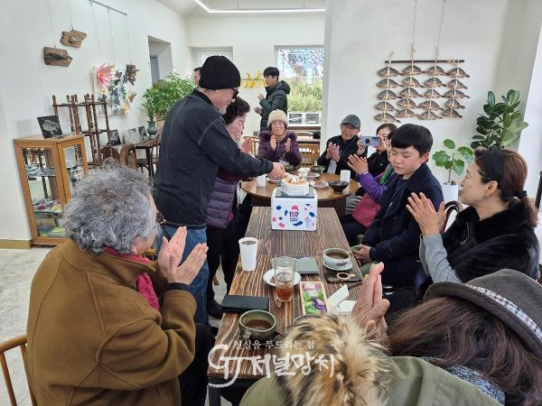 ![]() 종화지구 거점시설인 쫑포몬당마을카페에서 주민들이 전통차와 다과를 즐기고 있다 |