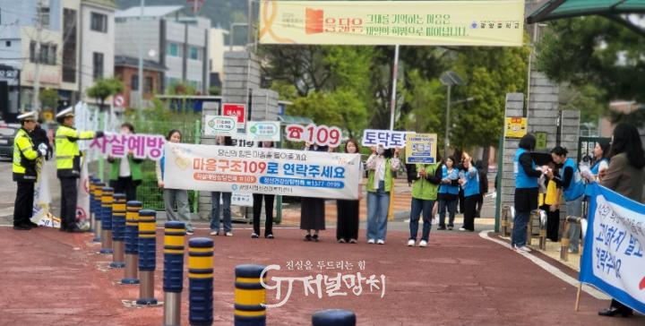 참여자들은 ‘생명사랑’ 문구가 적힌 피켓과 현수막을 활용해 등굣길 학생들을 맞이하며 정신건강복지센터의 주요 사업을 안내했다. 특히 정신건강 위기상담전화(☎1577-0199)와 자살예방 상담(☎109)을 알리고, 심리적 어려움을 겪는 주변 사람을 돕는 방법을 안내하는 데 중점을 뒀다.