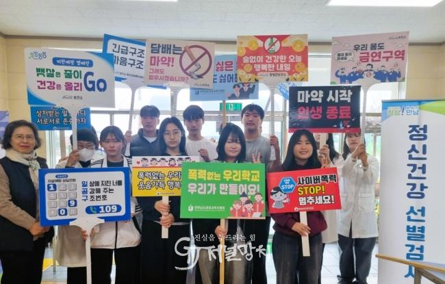 장성군보건소와 유관기관 관계자 등 17명이 지역 내 학교 5곳을 방문해 △정신건강 증진 및 자살 예방 홍보 △비만 예방 △금연 및 절주 교육 등을 진행했다.
