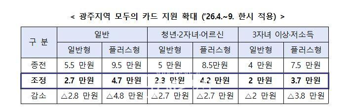 정부는 추가경정예산을 통해 4월부터 9월까지 6개월동안 시차 출퇴근 시간대의 ‘케이(K)-패스’ 환급률을 높이고, 케이(K)-패스 기반 정액 패스인 ‘모두의 카드’ 기준금액을 절반 수준으로 낮추기로 했다. 이에 발맞춰 광주시는 정부 정책과 ‘광주 지(G)-패스’ 중 혜택이 더 큰 쪽을 자동 적용해 지원폭을 넓힌다.