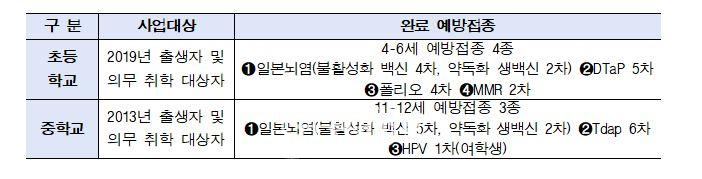 학교는 집단생활 공간 특성상 감염병 확산 위험이 있어, 입학 전후로 예방접종을 받는 것이 중요하다. 초등학교 입학 전 완료해야 하는 접종은 ▲일본뇌염 ▲DTap 5차 ▲폴리오 4차 ▲MMR 2차 등 4종이다. 중학교 입학 전에는 ▲일본뇌염 ▲Tdap 6차 ▲HPV 1차(여학생) 접종을 완료해야 한다.
