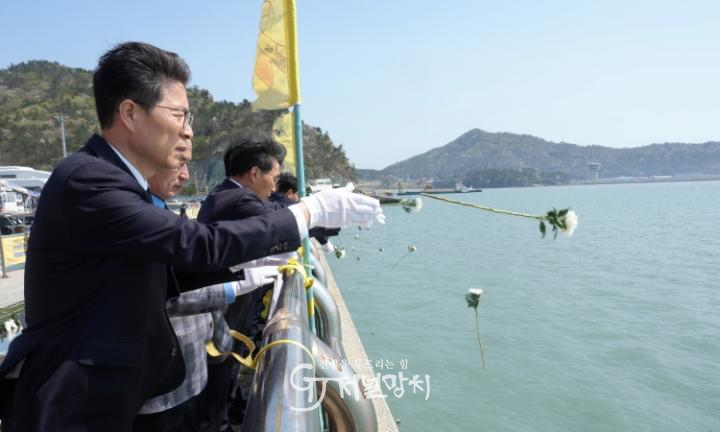 추모행사는 세월호 희생자 추모 헌화, 묵념, 해상헌화 등 순으로 진행됐다.