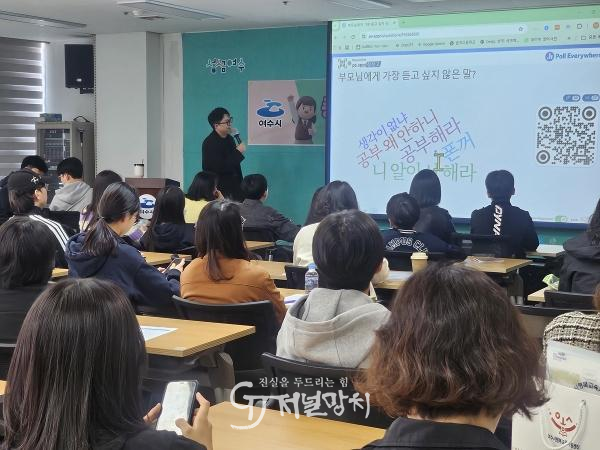 ![]() 여수시에 재학 중인 중학생과 학부모가 11일 여수시행복교육지원센터에서 ‘중학생 탄탄 공부법 특강’을 듣고 있다.