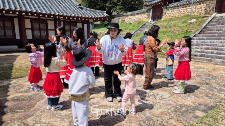 이번 프로그램은 강진군 육아지원센터와 연계해 강진향교의 전통 공간을 배경으로 가족이 함께 배우고 즐기는 체험형 활동으로 구성됐다. 특히 뮤지컬 체어, 포크댄스 등 공동체 놀이를 통해 부모와 아이가 자연스럽게 어울리며 관계를 형성하는 시간이 참가자들의 큰 호응을 얻었다.