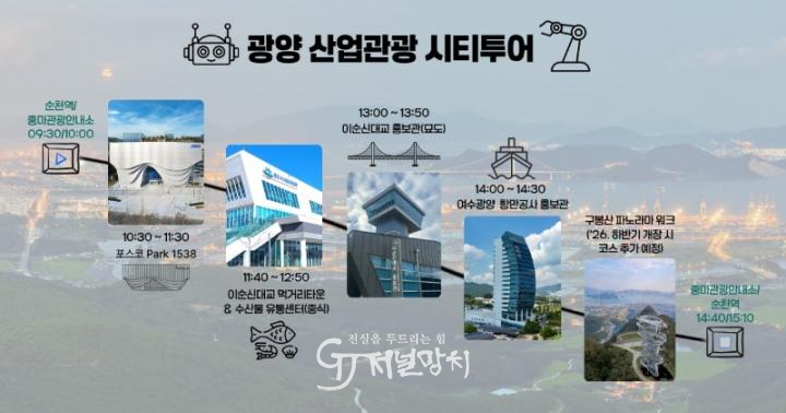 한편, 광양시티투어는 산업관광 코스를 비롯해 야경·힐링·역사 등 다양한 테마로 운영되며, 자세한 사항은 광양시 문화관광 누리집 ‘여행준비’의 ‘시티투어’ 코너에서 확인할 수 있다.