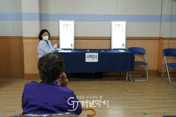 현장에서는 시력, 굴절, 안압 검사와 함께 세극등현미경 검사, 안저검사 등 정밀검진이 이뤄졌으며 검사 결과에 따라 맞춤형 상담과 돋보기, 안약도 함께 제공됐다.