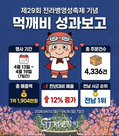 강진군은 지난 13일부터 19일까지 진행된 병영성축제 기념 먹깨비 할인이벤트를 통해 총 주문 건수 4,336건, 총매출액 1억 1,904만 원을 기록하며 성공적인 성적표를 받아들었다고 밝혔다.