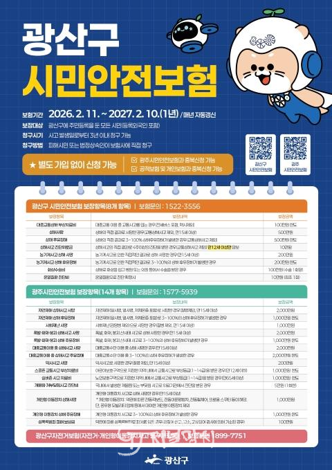 광산구 시민안전보험은 등록 외국인을 포함해 광산구에 주민등록을 둔 모든 시민이 별도의 가입 절차 없이 자동 가입된다. 보험료는 전액 광산구가 부담한다.