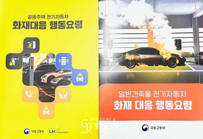 책자는 국토교통부와 한국토지주택공사의 전기자동차 화재 대응 행동 요령 및 화재 안전 지침서(매뉴얼)를 기반으로 구성됐으며, △충전 중 화재 발생 시 대응요령 △시설 관리자 및 입주민 행동수칙 △신속한 신고 및 대피 요령 △충전구역 지정 시 고려사항 등을 담았다.