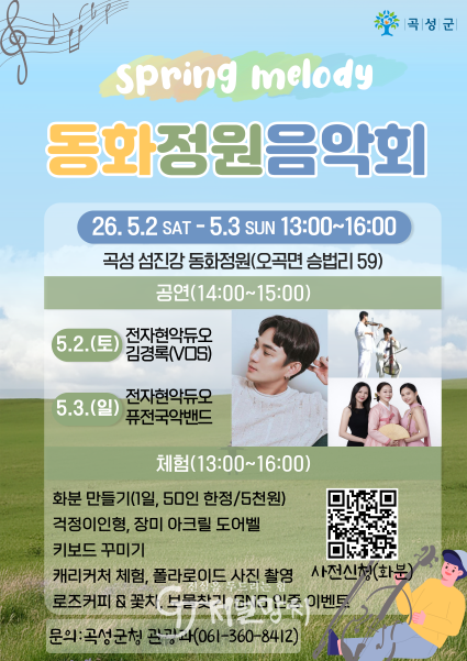 동화정원 음악회는 오후 1시부터 4시까지 진행되며, 드넓은 밀밭과 봄 감성이 어우러진 정원 속에서 음악과 체험, 휴식을 동시에 즐길 수 있는 복합문화 프로그램이다. 동화정원은 지난해 황화코스모스 명소로 주목받으며 SNS를 통해 입소문을 탄 대표적인 감성 관광지로 올 봄에는 싱그러운 초록빛 밀밭 풍경을 선사할 예정이다.