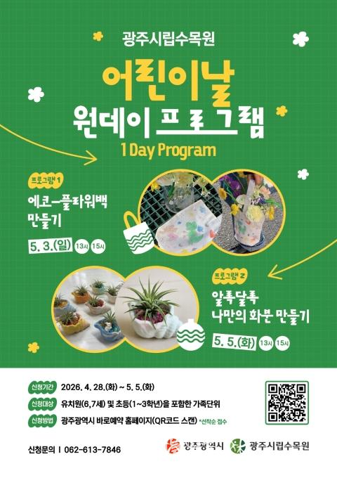 김희석 수목원·정원사업소장은 “어린이날을 맞아 아이들이 자연 속에서 즐겁게 식물과 친해질 수 있도록 프로그램을 준비했다. 가족이 함께 체험활동을 하며 의미 있는 시간을 보내길 바란다.”고 했다.