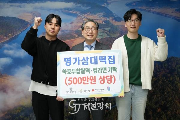 이날 기탁식에는 강상구 나주시장 권한대행, 명가삼대떡집 장효민 본부장, 박용민 팀장이 참석했다.