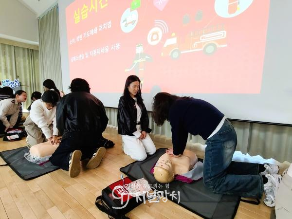 실습 시에는 훈련용 자동심장충격기와 마네킹을 활용해 교육 효과를 높였다.