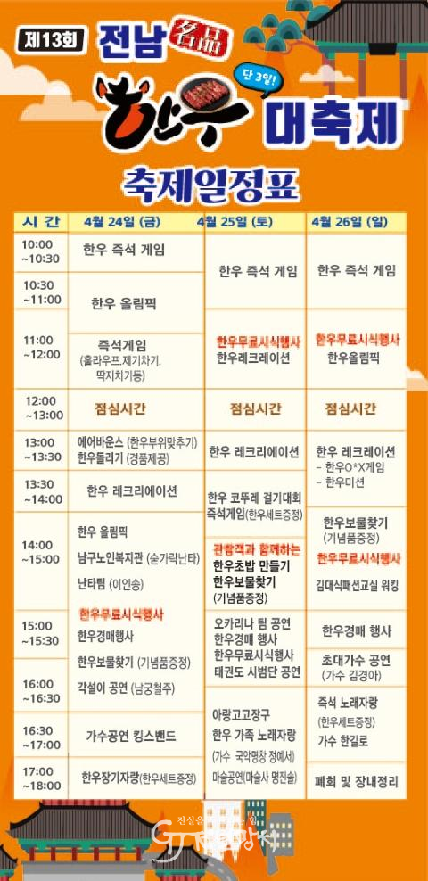 행사 기간 소비자는 전남에서 생산한 우수 한우고기를 정상가격보다 20%에서 최대 51% 저렴한 가격에 구매할 수 있으며, 다양한 할인행사와 시식행사도 함께 진행될 예정이다.