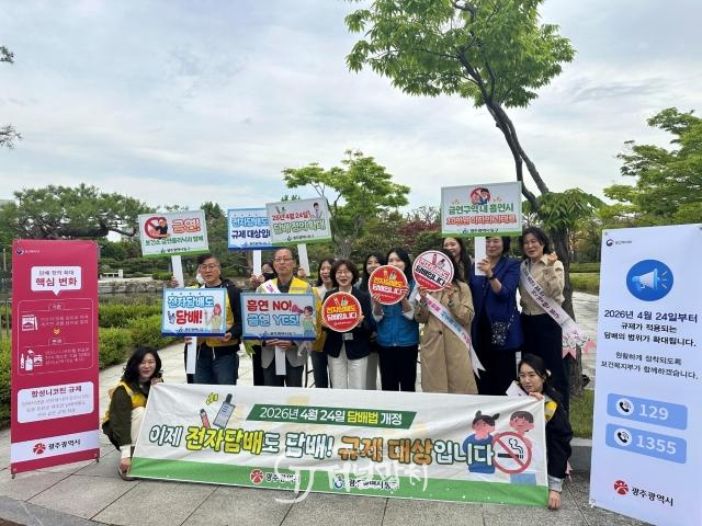 광주시는 법 시행에 따른 제도 변화를 알리기 위해 지난 23일 조선대학교에 이어 30일 전남대학교에서 학생들을 대상으로 거리 캠페인을 벌인다. 이번 캠페인에는 금연지원센터, 보건소, 통합건강증진사업지원단이 협력해 전자담배 사용이 증가하는 청년층에게 금연구역 확대와 규제 내용을 집중 안내한다.