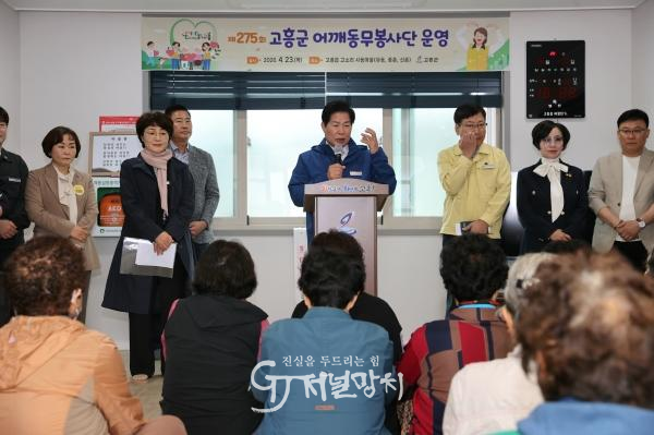 어깨동무봉사단은 칼갈이, LED등 설치, 방충망 수리 등 일상생활과 밀접한 30개 분야, 70명의 봉사단으로 구성된 찾아가는 맞춤형 서비스다. 이날 봉사단은 고흥읍 고소리 주민 200여 명을 대상으로 생활 불편을 해소하며 큰 호응을 얻었다.