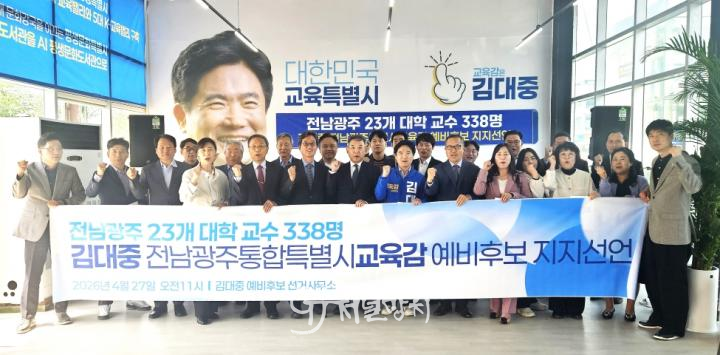 ‘김대중을 지지하는 교수 및 연구자 모임’은 27일 김대중 예비후보 선거사무소에서 간담회를 갖고 “전남광주 교육 통합을 성공적으로 이끌고, 나아가 대한민국 K-교육특별시를 실현할 적임자는 김대중 후보”라며 지지를 표명했다.
