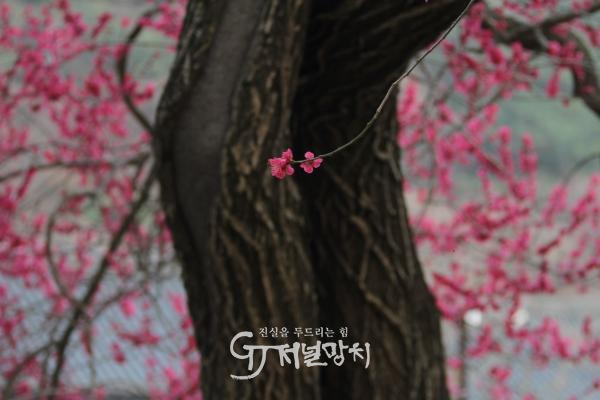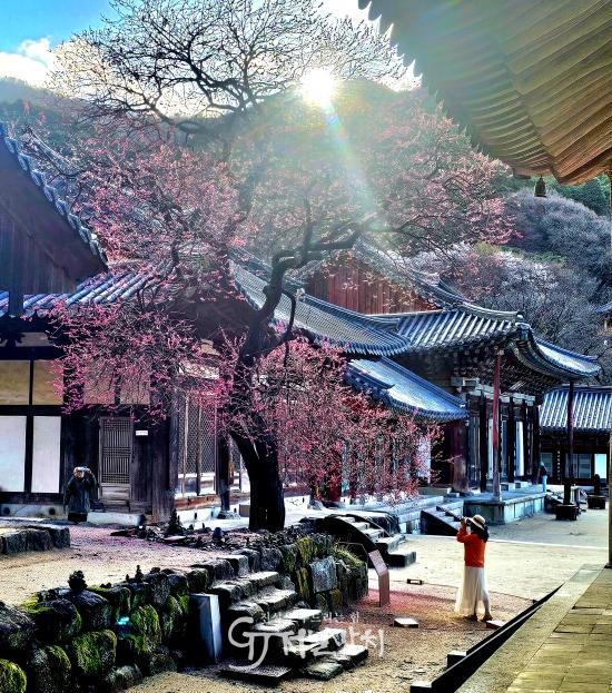사람의 얼굴은 앞이 있고 뒤가 있다. 어떤 이는 얼굴의 왼쪽이 또, 어떤 이는 오른쪽이 더 사진에 잘 받는다. 구례 화엄사 홍매화를 두고 탑돌이하듯 몇 바퀴를 돌았을까? 어느 찰나 내 카메라는 두 송이를 향해 미소를 지었다.
