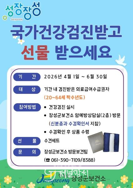 장성군보건소 관계자는 “이번 행사가 건강검진에 대한 많은 관심과 참여로 이어지기를 기대한다.”고 말했다.