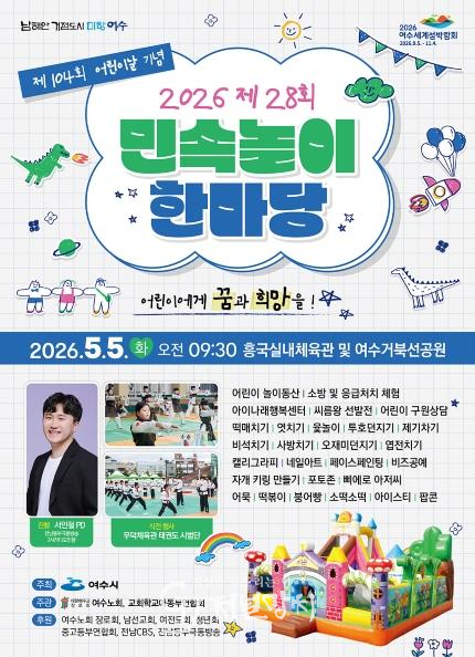흥국체육관·거북선공원에서는 대한예수교장로회 여수노회(대표 김채순)가 주관하에 오전 10시 모범 어린이 표창과 함께 태권도 시범, 제기차기, 윷놀이 등 전통 민속놀이와 비즈공예, 자개 키링 만들기 등 다채로운 체험부스가 운영될 예정이다.