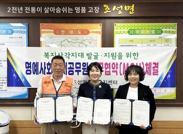 정인숙 조성면장은 “이번 협약을 통해 지역 주민이 함께 참여하는 복지공동체 기반이 더욱 강화될 것으로 기대된다.”며, “앞으로도 촘촘한 인적 안전망을 구축해 복지 사각지대 없는 조성면을 만들어 나가겠다.”라고 말했다.