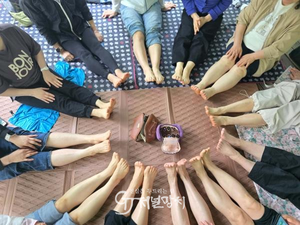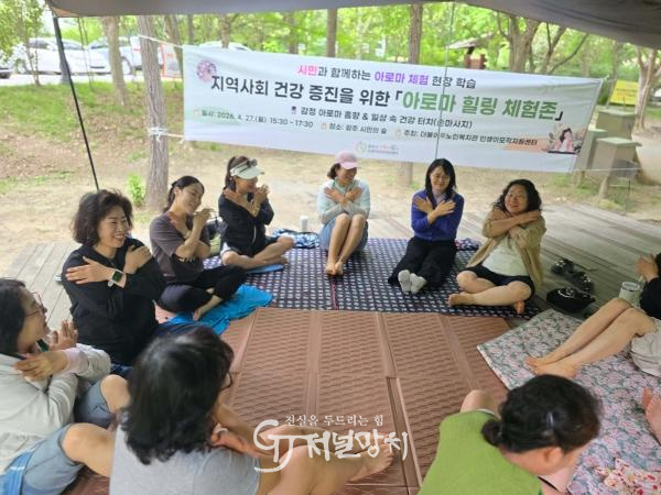 ![]() 더불어락노인복지관이 운영한 ‘아로마 힐링 체험활동’ 현장학습에서 참여자들이 원형으로 앉아 아로마 오일을 활용한 힐링 프로그램에 참여하고 있다. |