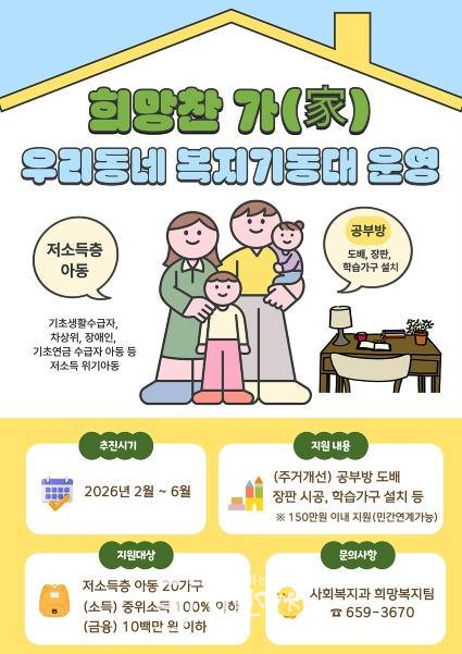 ![]() 2026년 주거환경 개선사업 ‘희망찬 가(家)’ 홍보 포스터 |