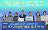 서구 GJ저널망치2025. 12.11[GJ저널 망치] 광주광역시 서구가 추진한 아동친화사업이 전국적으로 주목을 받았다. 서구는 보건복지부가 주관한 ‘아동정책시행 계획 추진실적 평가’에서 전국 최우수 지자체로 선정돼 보건복지부 장관상을 수상했다. 이번 평가는 보건복지부가 전국 228개 기초지자체를 대상으로 아동정책 계획수립의 적절성·이행 충실성·성과달성도 등 14개 세부지표를 종합적으로 심사해 서구를 최우수 기관으로 선정했다. 서구는 2022년 6월 광주 최초로 유니세프 아동친화도시 상위단계 인증을 받았으며 ESG에 바탕한 아동친화사업을 기반으로 ▲아동친화거...