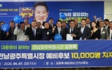 남구 GJ저널망치2026. 04.01[GJ저널 망치] 김영록 민주당 전남광주특별시장 예비후보에 대한 각계각층의 지지와 연대가 잇따르고 있는 가운데, 시․도민 1만여 명이 한마음으로 김 예비후보에 대한 지지대열에 동참했다. ‘(사)남도의 빛’ 회원 300여 명은 1일 광주 김 예비후보 선거사무소를 찾아 1만600명의 지지자 명단을 전달하며, 김 예비후보에 대한 전폭적인 지지를 선언했다. ‘(사)남도의 빛’은 균형 발전과 경제 도약 등 지역의 미래 발전 비전을 실현시키기 위해 활동하는 단체로, 광주와 전남 27개 시․군․구에 지부를 두고 있다. 이득운 ...